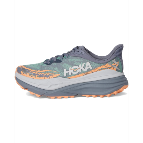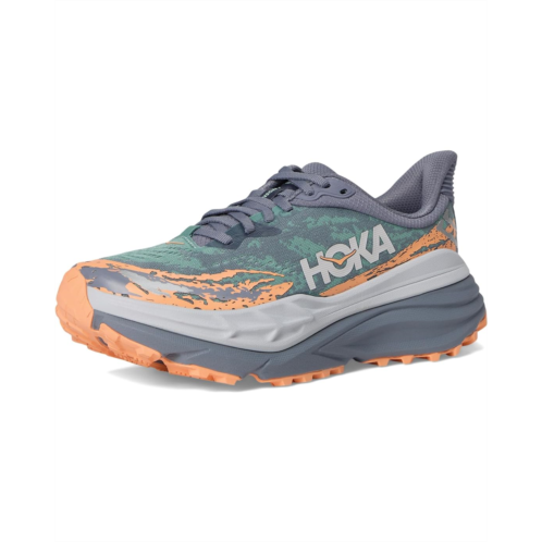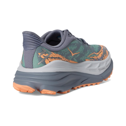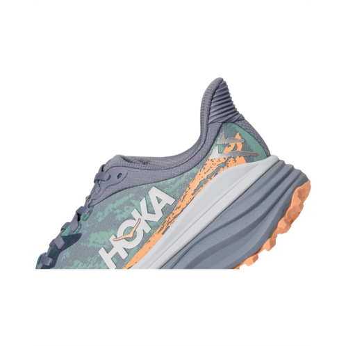 - Explore all the terrains with the utmost comfort of the Hoka Stinson 7 sneakers. The shoes feature an engineered jacquard mesh upper along with textile lining for breathable comfort and a removable EVA insole for superior cushioning. They are designed with H-frame technology to keep your feet stable on uneven terrains and have a durable toe cap for enhanced toe protection.