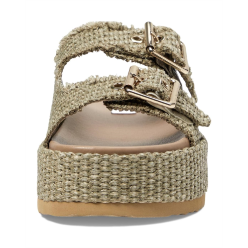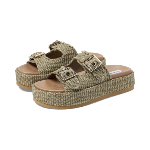 - Make your look chic and stylish wearing the Steve Madden Karrigan. This platform heel sandal features two adjustable buckle woven straps, brand detailing on the footbed, and vegan leather lining.