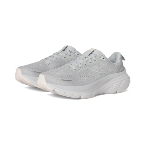 - Power through your day sporting the Saucony Guide 18, a perfect fusion of style, support, and all-day comfort. Featuring a premium leather upper for durability and a sleek look, this sneaker keeps you cool with its breathable mesh design and soft nylon lining. The EVA insole cradles your foot with plush comfort, while VERSARUN cushioning absorbs impact, reducing pressure for a smooth ride. A sturdy rubber outsole offers superior grip and durability, keeping up with your every move. With a offset and a secure lace-up closure, this shoe is built for effortless, stable strides-wherever life takes you!