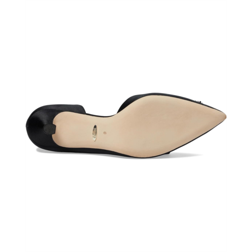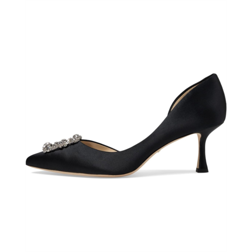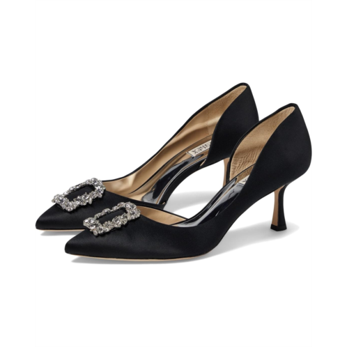 - Badgley Mischka Fabia II is something you would actually want to wear out loud to show off! Chic and elegant, these heels highlight a pointed toe silhouette with a d’Orsay topline and a sparkling crystal-embellished brooch on the top. Featuring a satin upper, a leather lining, and a synthetic footbed, the shoes are elevated by a sturdy kitten heel that makes them more captivating.