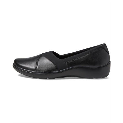 - Give your feet a comfy support while on a footslog journey wearing the low-top Clarks Cora Charm Flats. These slip-ons feature an almond toe silhouette with classic leather upper construction with strategized stitching accents.