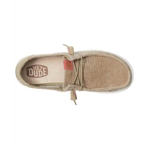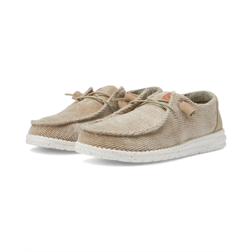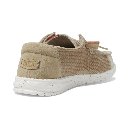 - Pick these Hey Dude Wendy Wave Corduroy sneakers for a casual evening outing in the city. The shoes have moc toe and slip-on style with two-eyelet elastic panels. The flat platform makes it comfortable for daily walks. The shoes are made of leather and textile upper. It is lined with textiles and features a removable textile insole.