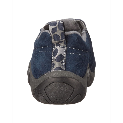 - Slip-on design features a rounded-toe, stretch side panels, and a pull-tab heel. A padded collar with a breathable mesh lining, removable EVA footbed, and a non-marking rubber outsole.
