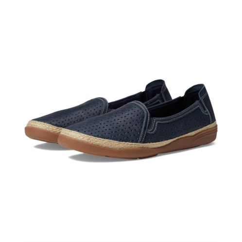 - Highlight your casual wardrobe with the Elaina Ruby espadrille slip-on from Clarks. This perforated leather pair sports an Ultimate Comfort footbed for extra support.