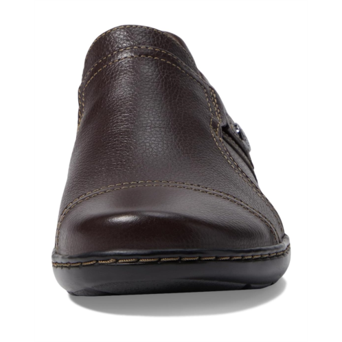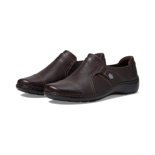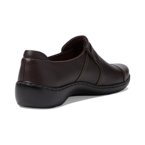 - The Clarks Cora Poppy slip-on loafer boasts a textured leather and textile upper.