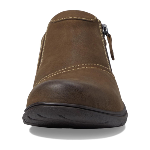 - Take every step with lasting comfort wearing Clarks Carleigh Ray Flats. The flats are engineered with a leather upper, synthetic lining, and faux leather insole. The round toe shape and zipper closure are designed for easy adjustability.