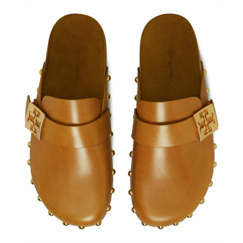 - Funky and comfortable, the Tory Burch Mellow Stud Mules are designed with robust leather and studded rivet-like hardware accenting the iconic metallic logo of the brand.