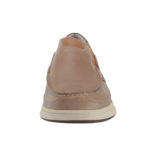 - Smooth leather uppers with contrast stitching and a moc toe.