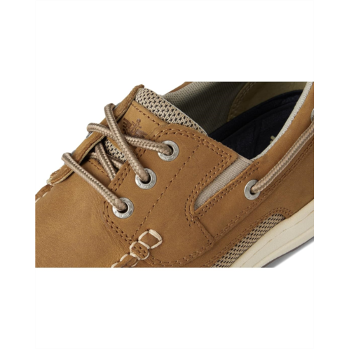 - Tumbled nubuck and mesh upper in a boat shoe silhouette.