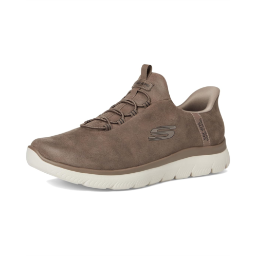 - Step into easy-wearing comfort with the SKECHERS Summits Korlo Hands Free Slip-In shoes. Designed with an exclusive Heel Pillow and textile lining, these slip-on sneakers feature a deconstructed quilted upper that provides a roomy, flexible fit for enhanced comfort, while the cushioned Skechers Air-Cooled Memory Foam insole provides pressure relief, instant comfort, and breathability. The gel-infused, high-rebound memory foam cushioning contours to most foot shapes. Their stretch laces ensure a secure fit. Add performance comfort to casual occasions; wear these athletic shoes indoors, around the house, to and from work, business, for travel, or even while driving; the possibilities continue.