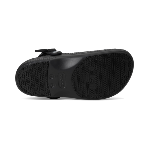- Enjoy the comfort and style of the iconic clog, now with a slip-resistant outsole and unique adjustable heel strap. In this versatile clog, you'll have the benefit of enhanced traction and security, which can meet a variety of needs. The specially-designed heel strap adjusts to be extra secure, and is easier to get on and off with its textured pull tabs. Features the same Crocs Lock slip-resistant treads as found in the Crocs At Work collection. Plus, Jibbitz holes on the upper makes them easy to personalize. The Classic SR Clog offers the opportunity to be confident, secure and comfortable in your own shoes.