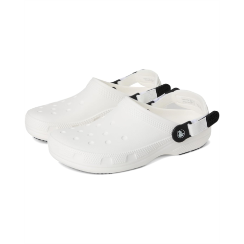 - Enjoy the comfort and style of the iconic clog, now with a slip-resistant outsole and unique adjustable heel strap. In this versatile clog, you'll have the benefit of enhanced traction and security, which can meet a variety of needs. The specially-designed heel strap adjusts to be extra secure, and is easier to get on and off with its textured pull tabs. Features the same Crocs Lock slip-resistant treads as found in the Crocs At Work collection. Plus, Jibbitz holes on the upper makes them easy to personalize. The Classic SR Clog offers the opportunity to be confident, secure and comfortable in your own shoes.