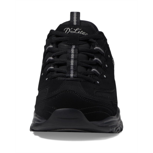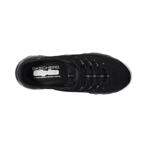 - Step up your style game sporting the Skechers Hands Free Slip-Ins D'Lites: Leather upper luxury, unlined comfort, and rubber outsole grip. Embrace modern convenience in iconic Skechers fashion. Featuring a molded Slip-ins heel, Heel Pillow, Air-Cooled Memory Foam, and a lace-up leather and mesh combo.