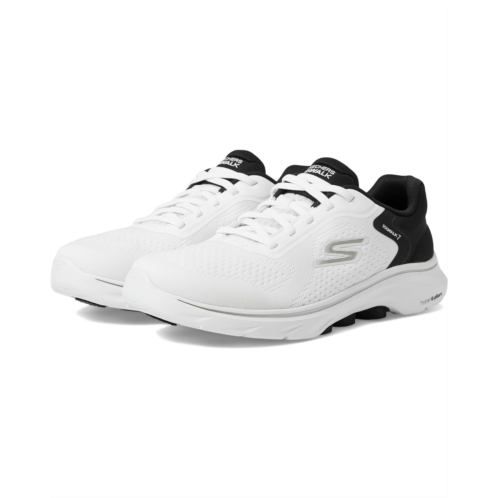 - Ensure a comfortable outing any time of the day by wearing SKECHERS Performance Go Walk 7 - Cosmic Waves sneakers. Crafted from synthetic breathable engineered mesh upper, the shoes feature in the Go Walk 7 collection by the brand. It is lined with fabric. An Air-Cooled Goga Mat footbed offers unbeatable comfort. The shoes have rounded toe and lace closure.