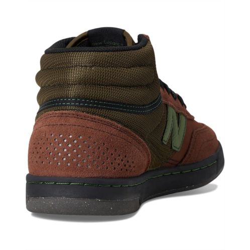 - Introducing the New Balance Numeric 440 v2 High Sneaker, an update to the team favorite high-top skate shoe. We've updated the foam in the heel to Abzorb and coupled that with an Ortholite insole insert to increase comfort and help minimize impact. Lowering the height of the collar increases mobility, while the tack stitching on the eyestay and increased height of the toe cap increase durability. The round-toe sneakers are crafted with a suede upper, polyester lining, and mesh for breathability & comfort. It also features double-layered suede toe for durability, reflective performations on the heel, and New Balance signature logo detail at the side panels for an authentic touch.