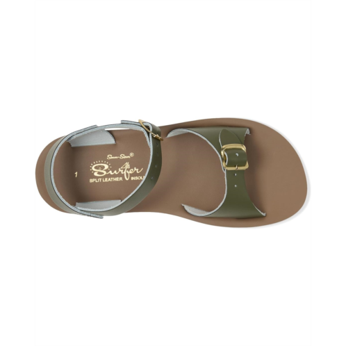 - The Sun-San Surfer is a classic two-strap sandal perfect for younger feet. An adjustable toe buckle and ankle strap make them great for both wide and narrow feet. She'll wear them comfortably all day long thanks to the lightweight, cushioned urethane sole. Rust-proof brass buckles and scuff-resistant water friendly genuine leather make them ideal for in-and-out of water wear.