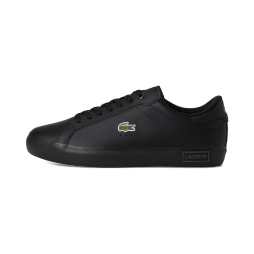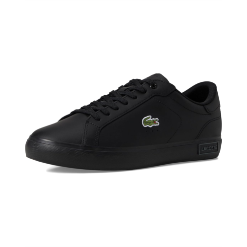 - Step out in the Lacoste Powercourt Leather Sneakers, a contemporary lace-up sneaker with wear-anywhere appeal. Smart, color-blocked uppers come in high-quality Nappa leather for durability & breathability, adorned with a flat, burnished finish for added style. Contrasting, crocodile-inspired elements across the shoe give an urban-informed edge, while still emphasizing Lacoste's rich sporting origins. Debossed branding and quarter perforations add signature finishing touches, while the soft, moisture-wicking textile lining allows for comfort and dryness throughout wear. Plus, the durable rubber outsole provides excellent traction and stability on various surfaces.