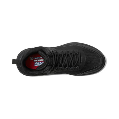 - Get ultimate protection and support while your work wearing the SKECHERS Work Street Treader - Scorron Shoes in stylish mid-top silhouette with lace-up closure. The slip-resistant shoes feature a breathable leather and synthetic upper, lightweight breathable fabric lining, and an Air-cooled Memory Foam insole. The ankle pull tab on the shoes allows easy donning and doffing.