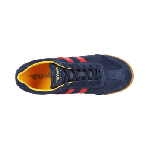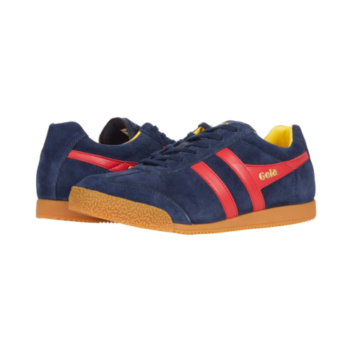- The Gola Harrier lace-up sneaker is a unique comfort trainer made of smooth leather or soft suede uppers.