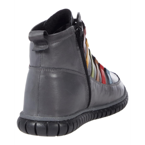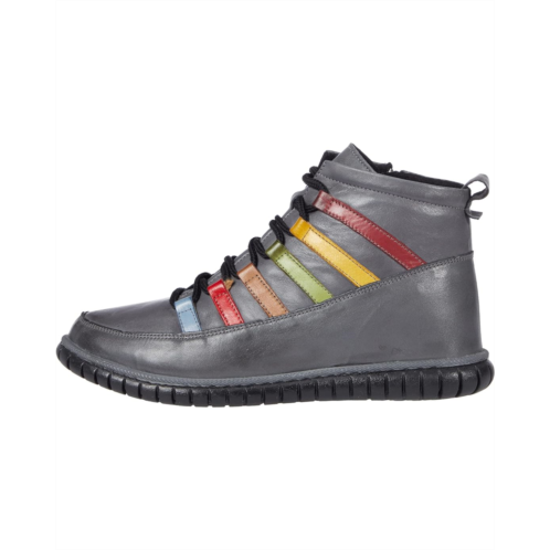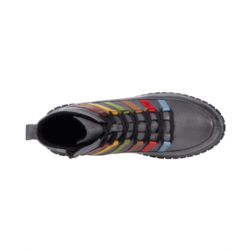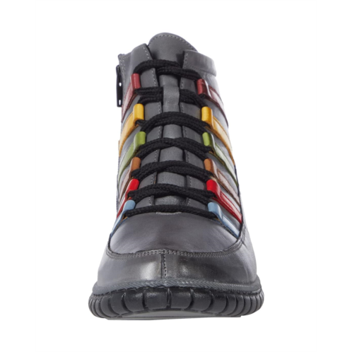- Create a unique look with the help of the Spring Step Mambo, a leather ankle boot with multi-colored stripes.