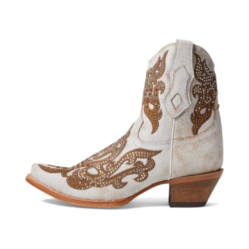 - Make a statement donning the Corral Boots C4104. Crafted with luxurious leather upper adorned with embroidery crystal overlays, these ankle-high boots are sure to turn heads wherever you go. The snip toe design and Cuban heels give you a touch of Western flair, while the leather lining and insole keep your feet comfortable all day.