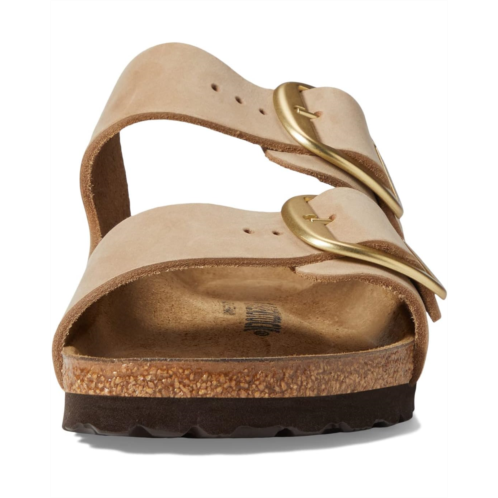 - The Birkenstock Arizona is a genuine classic that has been delighting both men and women with its timeless design for decades. The Big Buckle version features a large, elegant pin buckle a fantastic, striking eye-catcher on this otherwise understated sandal. The upper is made from high-quality nubuck leather that boasts a natural, rustic appearance.