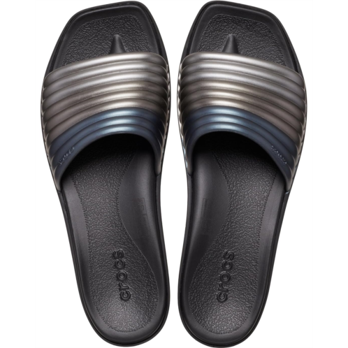 - Step into the spirit of the city with the Crocs Miami Slide Sandals, a perfect blend of elegance and laidback style. Crafted as slides for women and men, these trendy slides boast a square toe shape and a soft, ridged upper strap, capturing the essence of urban fashion with everyday comfort. These Crocs slides redefine trendy footwear with a lightweight and flexible design. The soft and puffy ridged upper complements the sleek, gradual wedge, offering a flat sole with a slight lift. Whether you're looking for mens slides or womens slides, the Miami Slide brings a stylish and comfortable edge to your wardrobe. Elevate your look with these dressy yet comfortable sandals for women.