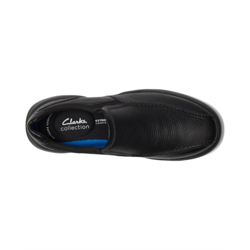 - Step into action with this cushioned Clarks slip-on. Made of tumbled leather with dual goring for flexibility and a padded collar for a comfortable fit.