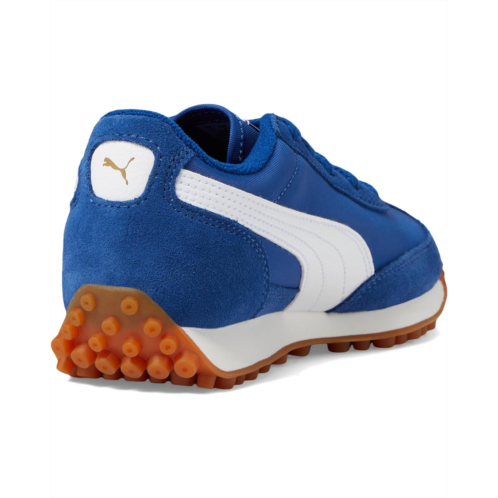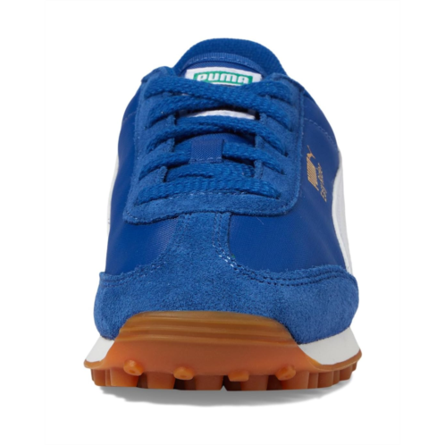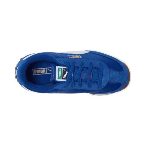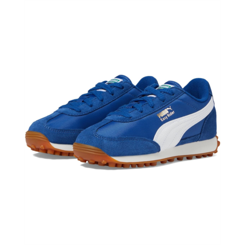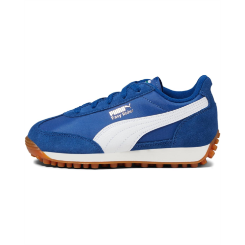 - With its classic slim profile and vintage vibes intact, the PUMA Kids Easy Rider Sneakers boasts a truly timeless silhouette. The low-top sneakers feature a mixed textile upper with synthetic leather overlay, Suede overlay on toe and vamp, leather lining, and :ethylene vinyl acetate insole. While the suede heel comes with synthetic leather underlay, the debossed and printed puma branding, synthetic leather formstrip, and foil printed puma branding on quarter give the look an authenticity. The lace-up closure on the sneakers is designed for easy adjustability.