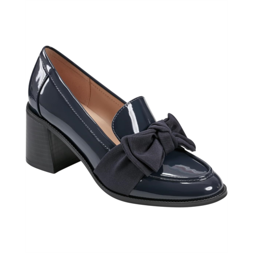 - Designed in a loafer silhouette with sculpted high-block heel, the Bandolino Korrar ensures a standout appeal. The slip-on footwear features polyurethane upper with bow accentuation and almond toe silhouette.