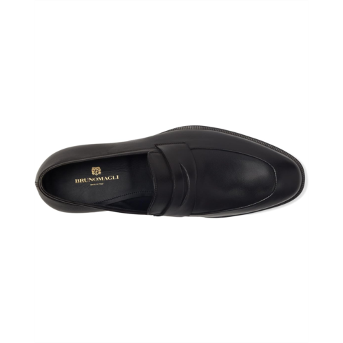 - Add a sophisticated touch to your look by wearing the Bruno Magli Maioco Penny. The slip-on style shoes have leather upper, insole, and lining that adds longevity and comfort. The elegant handmade shoes have a lightweight construction and ultimate softness for comfortable prolonged wear. They have genuine stacked leather block heel. Pair this with your suit to accentuate your gentleman's look effortlessly.