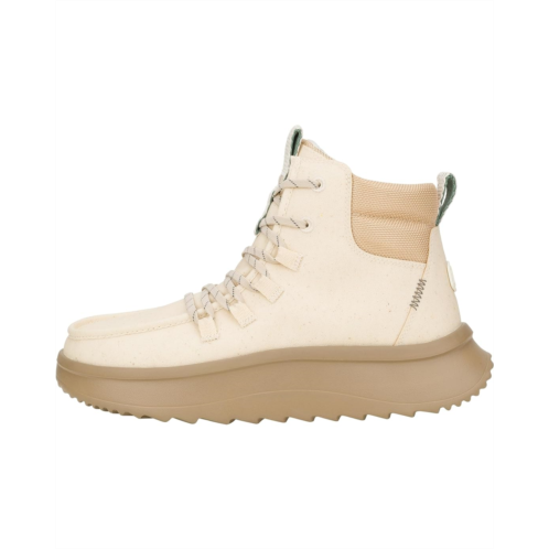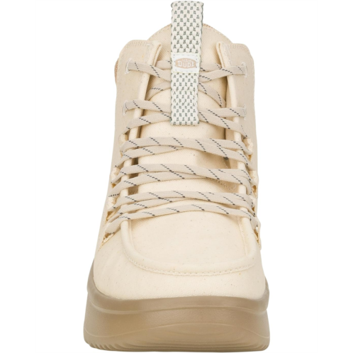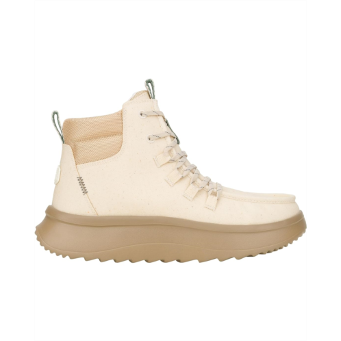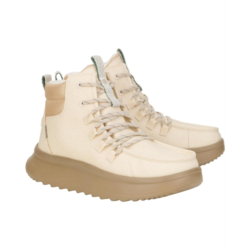 - Walk into the Hey Dude Wendy Peak Apres Coated Twill, where water-resistant, premium leather uppers keep your feet warm and stylish, no matter the weather. Enjoy the fabric lining and cushioned EVA insole for ultimate comfort, while the lightweight, flexible rubber outsole ensures effortless movement. With a round toe and easy slip-on design, these ankle-high booties offer practical elegance and seasonal flair with lace design, making them your go-to choice for any adventure.