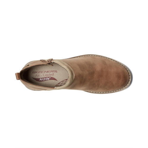 - Step into the season with stylish supportive comfort wearing SKECHERS Mojave - Indefinite Boots. This ankle boot features a micro leather and suede upper with a side-zip closure, faux leather lining, removable Arch Fit cushioned insole, and a lightweight flexible midsole that helps mold your foot to reduce shock. These are designed in a round-toe design, low-top height, and an ankle pull tab for donning & doffing.