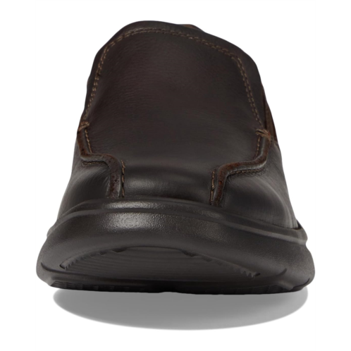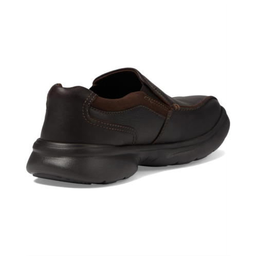 - Step into action with this cushioned Clarks slip-on. Made of tumbled leather with dual goring for flexibility and a padded collar for a comfortable fit.