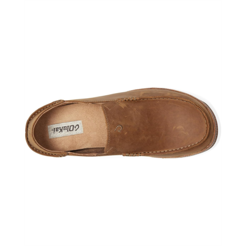 - The OluKai Moloa will have you steppin' with the carefree island style for those lazy days under the sun. Constructed from a full-grain leather upper with hand-sewn stitching, these shoes feature embossed 'crest' detailing on the vamp with a microfiber suede lining and a rigid cellulose fiber insert for stability.