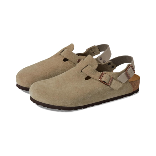 - Walk into comfort and style with the Birkenstock Tokio - Suede clog. Elevate your stride with its plush suede upper and cozy suede insole. Designed for all-day wear, it boasts an EVA outsole for lightweight cushioning and durability. The backstrap buckle closure ensures a secure fit, while the round toe offers ample room for your toes. Perfect for work or casual outings, the Tokio clog combines classic BIRKENSTOCK comfort with a modern twist.