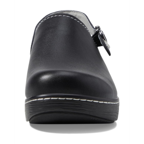 - Practical meets fashionable with the Alegria Olie, a sling-back leather clog. This twist on a timeless classic features a stain-resistant upper, padded sling-back strap with an adjustable buckle, and slip-resistant polyurethane outsole. This style also provides comfort with a durable microsuede removable footbed that can easily take it from medium to wide.