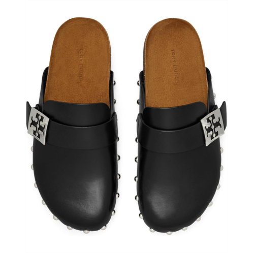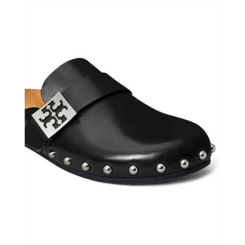 - Funky and comfortable, the Tory Burch Mellow Stud Mules are designed with robust leather and studded rivet-like hardware accenting the iconic metallic logo of the brand.