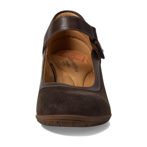 - Add a touch of timeless elegance to your wardrobe wearing the Comfortiva Barnes Mary Jane pumps. These classic heels feature leather upper with chic leather trim and luxurious faux suede lining. Slip into comfort with the microfiber sock and memory foam cushion, while staying stylish with the stacked heel.