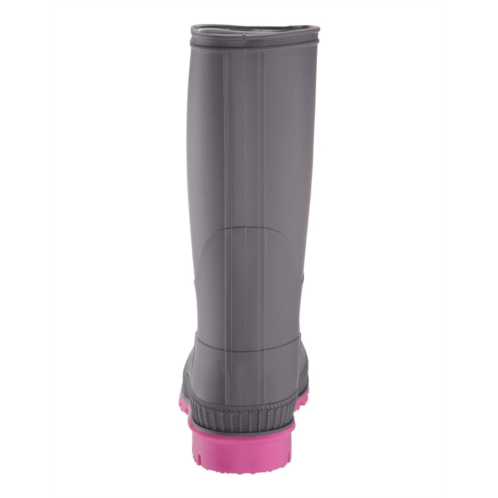 - Pull-on rainboots feature a smooth textile lining, removable shock-absorbing footbed, and a non-marking rubber outsole.