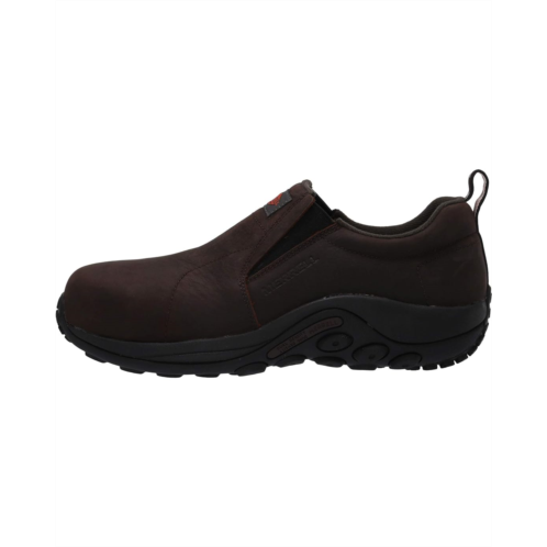 - The Merrell Work Jungle Moc Leather Composite Toe slip-on work shoes combines a durable, full grain leather upper, superior safety protection, and reliable slip resistance to give you total confidence all workday long.