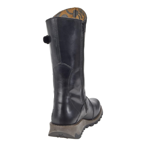 - There's no such thing as having too many black leather boots, so add the FLY LONDON MES913FLY to your rotation! These tall boots feature buckle details at the shaft and vamp, and a funky saw-edge rubber sole.