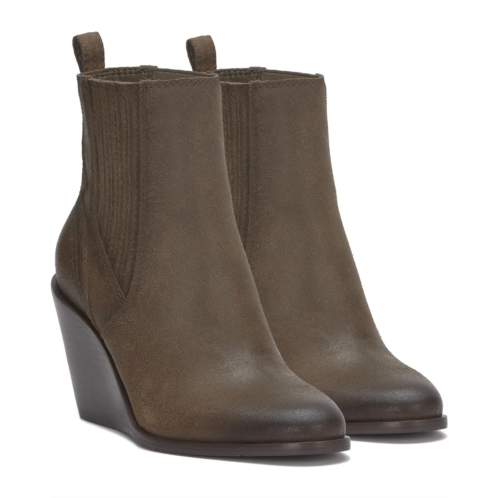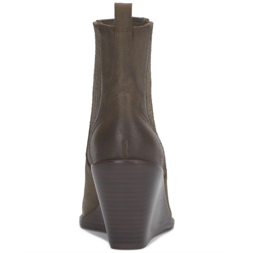 - Wedge bootie of the season! The Lucky Brand Wilano has a burnished suede upper and exposed stack wedge heel, keeping this dressier silhouette casual and cool. The pull-on footwear features an ankle-high silhouette with pleated gore panels and heel pull tabs for easy wear.