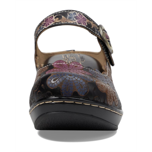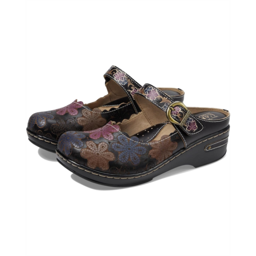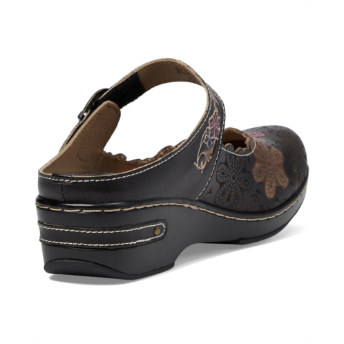 - Sink into the sublime comfort of the L'Artiste by Spring Step Flochino clogs. The suede lining and plush extra-comfortable suede footbed of these shoes envelop your feet in blissful softness that feels like walking on air while the handpainted flowers with scalloped edges adorn the supple leather upper for a feminine touch. The antique brass buckles and floral embossed ankle straps add artisanal vintage details. Slip into these heeled clogs to surround your feet with featherlight comfort and timeless beauty.