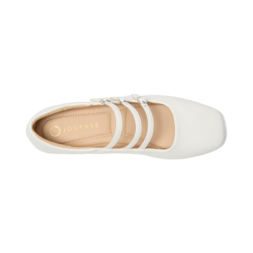- The Journee Collection Darlin mary jane flat features a stylish and comfortable design with a flat sole, making it a versatile choice for everyday wear. The multi-strap detailing with a buckle closure adds a trendy touch, enhancing the square toe style and providing a secure fit. Crafted with faux leather upper and polyurethane footbed, the footwear prioritizes both fashion and comfort.