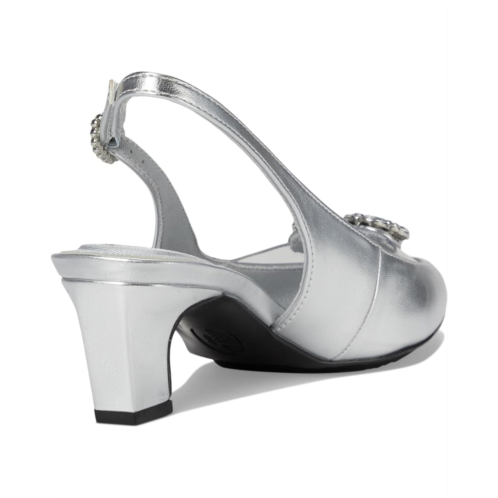 - Manage your style, your way wearing the Anne Klein Inviting. Crafted from faux leather upper, lining, and insole, this pair of heels features pointed toe, slingback strap with buckled closure, block heels, and a big stone detailing on the vamp.