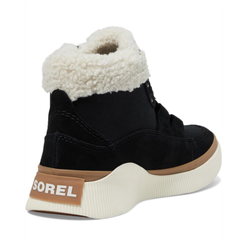 - Keep walking through the day wearing the SOREL Out N About IV Mid Sneaker Waterproof shoes. Made with suede and canvas upper, the shoes feature a faux shearling collar and felt tongue. The textile lining, waterproof construction, and rubber insole ensure added comfort. The mid-top shoes have a lace closure, vulcanized rubber foxing tape, and a round toe shape for ample foot space. The wedge heel with a contoured anatomic design ensures superior comfort on every step.