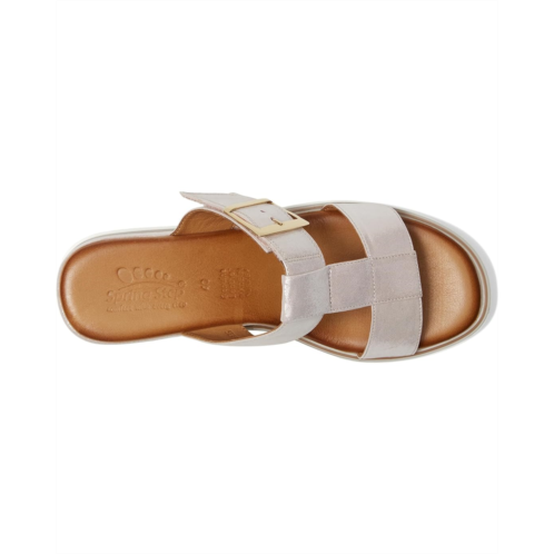 - Combine unique style, and ultimate comfort wearing the wedge heel Spring Step Seaport. Crafted from leather upper, lining, and insole, this pair of sandals features open round toe, double strap detailing with accented hook-and-loop buckle, elevating this easy slip on style, and brand detailing on the footbed.