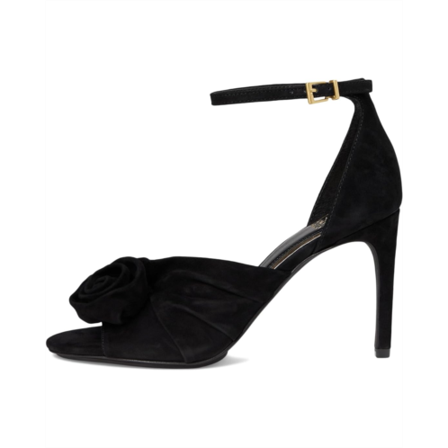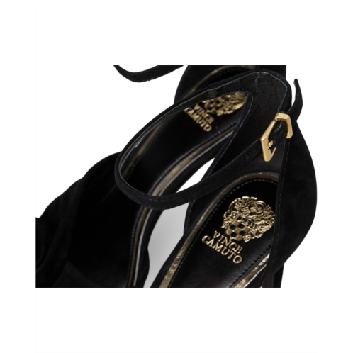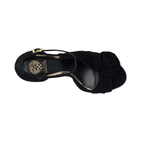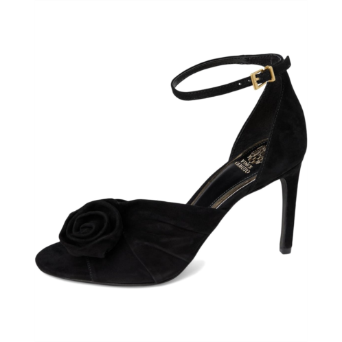 - Make heads turn with your unique fashion dimension wearing the Vince Camuto Adaline Sandals. This two piece open-toed dress shoe has an adjustable ankle strap with buckle closure and a covered, stiletto heel. Constructed of suede or satin upper, the material is draped and swirled into an oversized rosette covering the front piece of the shoe. A rubber comfort pod on the outsole and a padded lining add comfort for extended wear time.