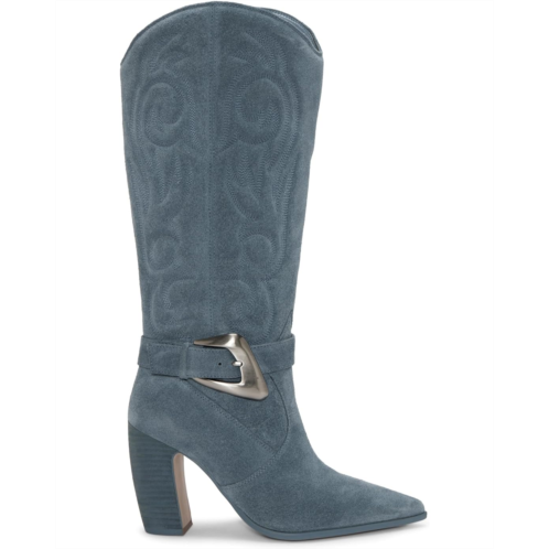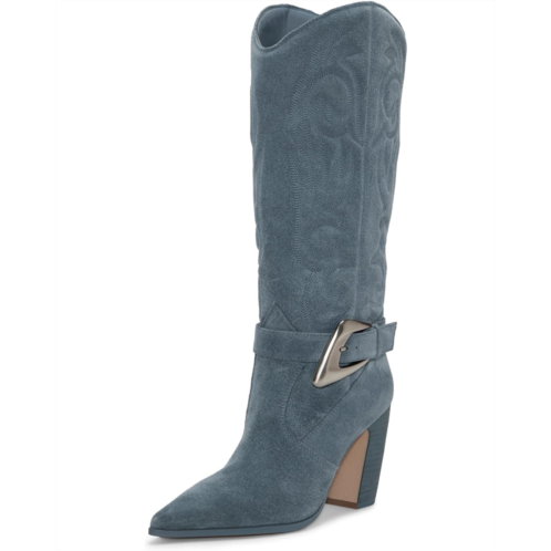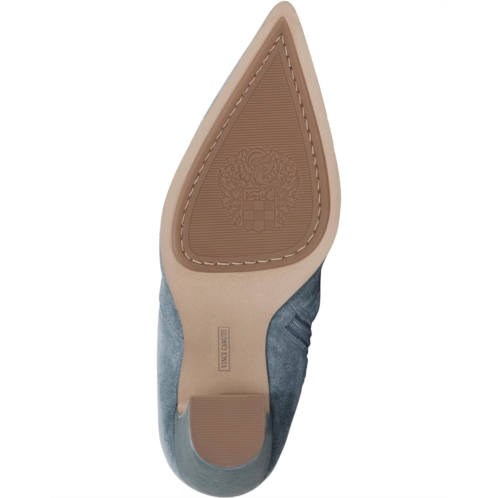 - Step into sophistication styling Vince Camuto Biancaa Booties! Featuring a chic suede upper and knee-high length, these booties offer style and comfort with a polyester lining and insole. The pointed toe and ornate puffed stitch detail add elegance, while the oversized buckle and scalloped topline make a bold statement. Complete with a durable rubber outsole and side zippered closure for ease, these booties are your go-to for effortless fashion.